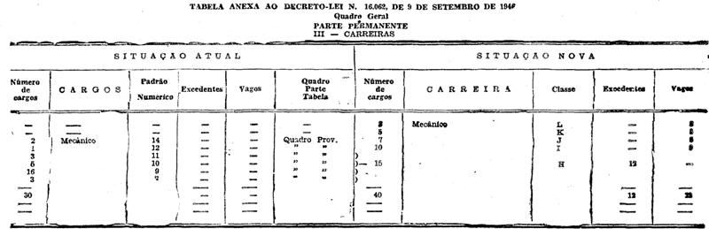 reclassificados os ocupantes de cargos de Mecânico do Quadro