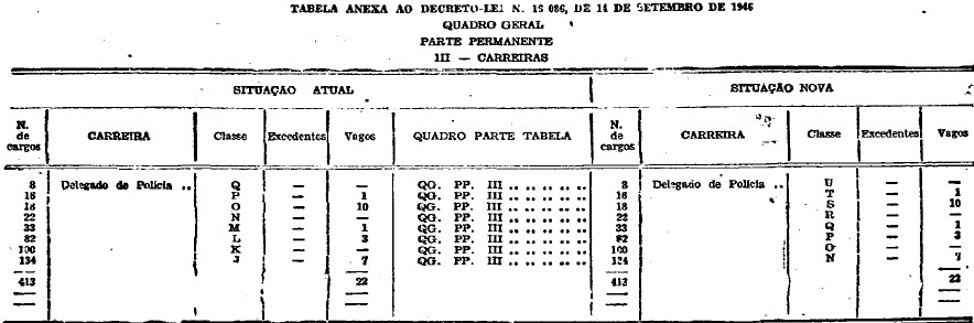 carreira de Delegado de Polícia, da Tabela III da Parte Permanente do