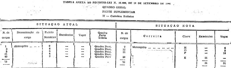 reclassificados os ocupantes de cargos de Mensageiro do Quadro