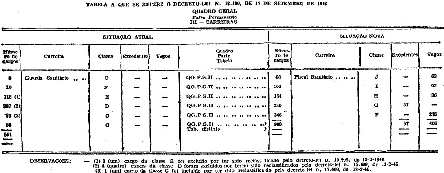 de Fiscal Sanitário, a carreira de Guarda Sanitário, da Tabela II da Parte