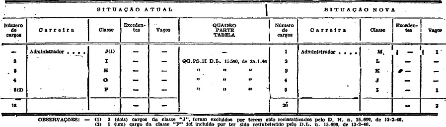 trata este decreto-lei 1 (um) cargo de Administrador, padrão numérico 13, do