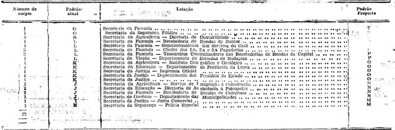 Escritório, do Quadro Provisório, padrões numéricos 10, 11 e 6, lotados