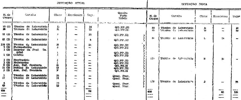 de Laboratório e os ocupantes de cargos de Auxiliar de Laboratório do Quadro