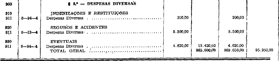 1947, é orçada em Cr$ 965.000,00 (novecentos e sessenta e cinco mil