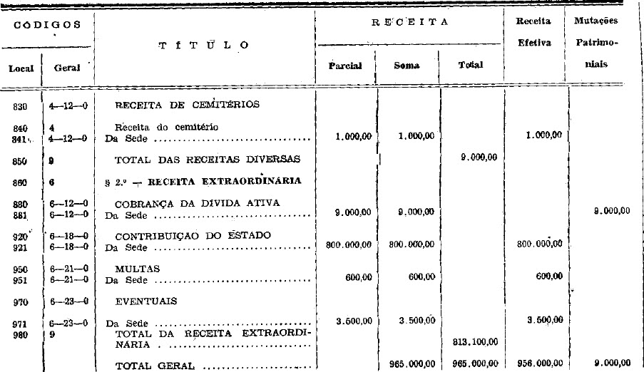 - A Receita Geral do Município de Águas da Prata, para o exercicio de