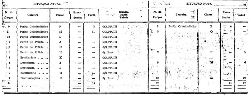 carreira de Perito de Polícia, da Tabela III, da Parte