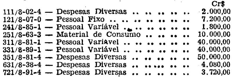 oitocentos cruzeiros), suplementae às seguintes verbas do orçamento: