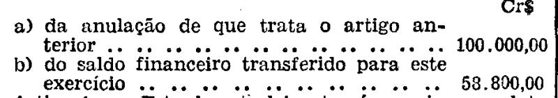 Artigo 3.º - O valor do presente credito será coberto com os recursos provenientes: