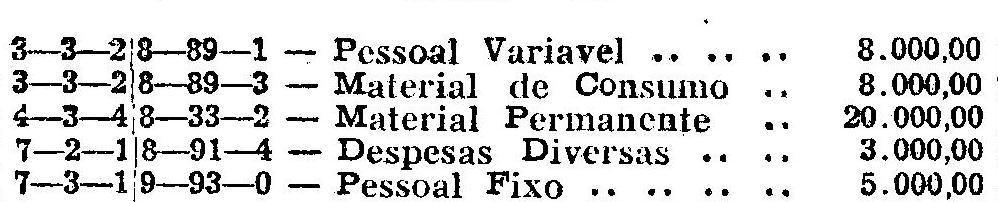 No artigo 1.º - Onde se lê: "7-3-1|9-93-0 - Pessoal Fixo.........Cr$.....5.000,00"
