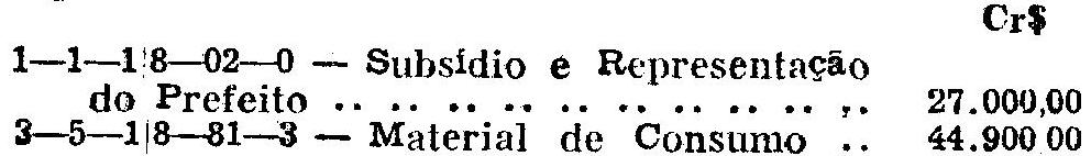 crédito suplementar de Cr$ 151.900,00 na Prefeitura da