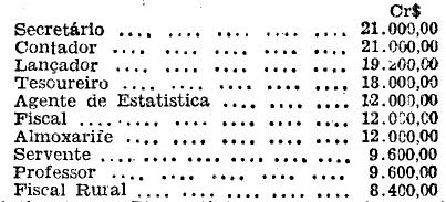 vencimentos dos cargos de Almoxarife e Fiscal Rural;