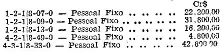 117.300,00 (cento e dezessete mil e trezentos cruzeiros), suplementar às seguintes verbas do orçamento: