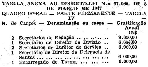 cargos criados pelo decreto-lei n. 16.354, de 28 de novembro de 1946;