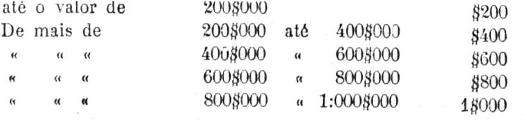 e assim por deante, cobrando-se mais 1$000 por conto de réis, ou fracção de conto de réis.
