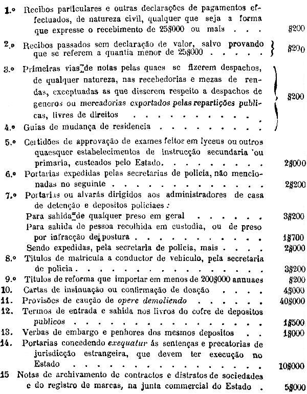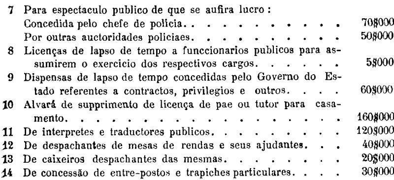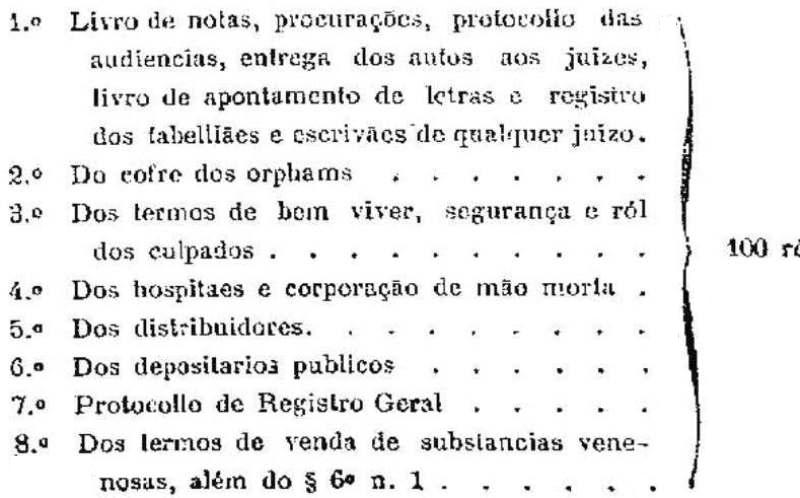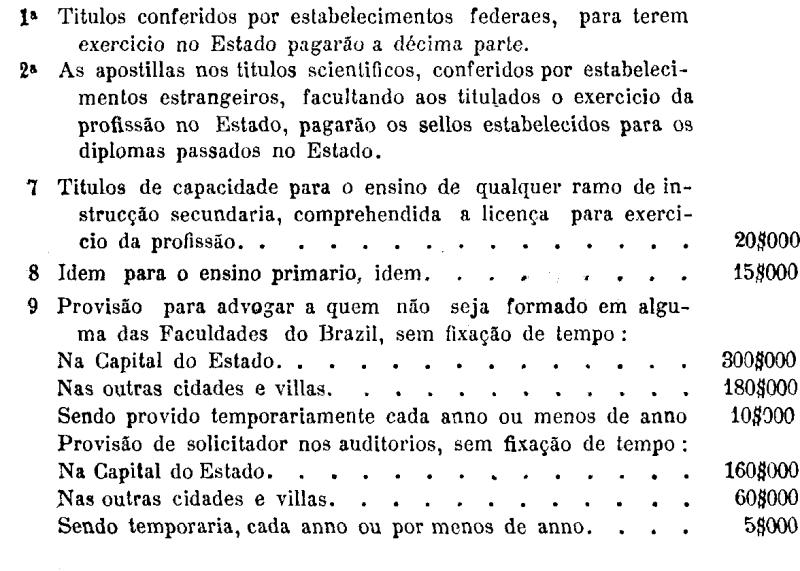 5º - Títulos de nomeação de serventuários vitalícios, de officiaes de justiça, sobre a respectiva lotação.............................................................................................12%
