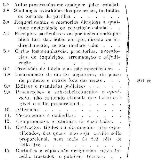 1.º "O sello de 200 réis é devido por meia folha de papel, toda escripta" ou em parte, não excedendo de 33 centimetros de comprimento e 22 de "largura. Excendendo qualquer destas medidas, pagará o dobro."
