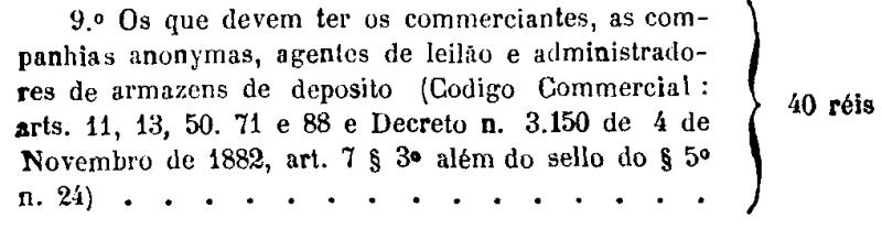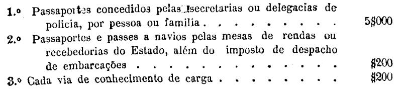 Observação: - O Sello do capital e dos titulos de obrigações ao portador das sociedade anonymas será pago por verba exarada na guia apresentada a o pagamento.