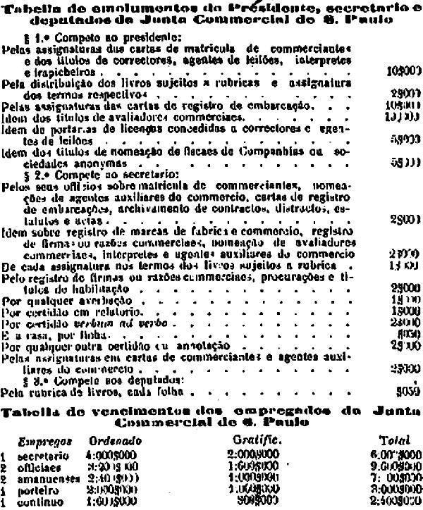 requisição da Junta, os emolumentos taxados no Regimento de custas em