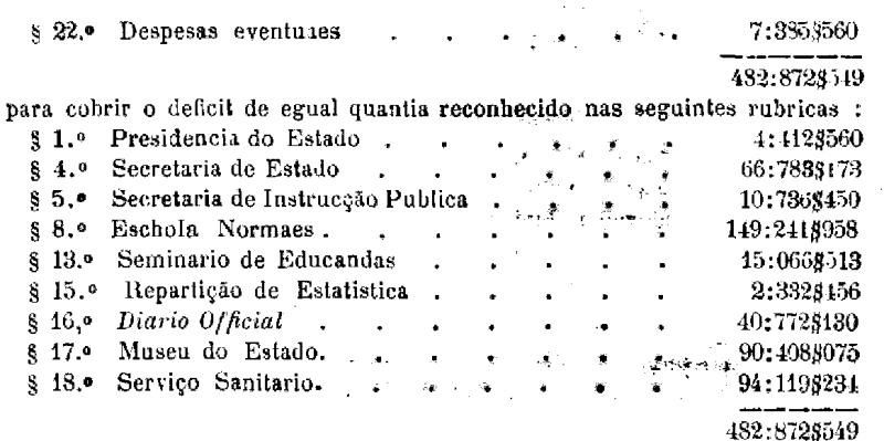 Artigo 2.º E' transportada a quantia de 482:872$549 do saldo verificado nas seguintes rubricas: