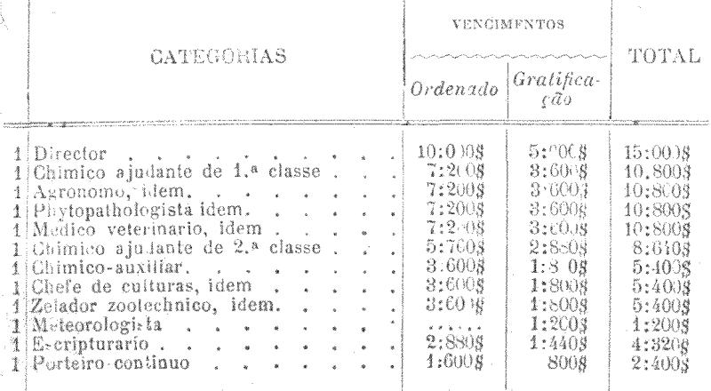TABELLA DE VENCIMENTOS DO PESSOAL DO INSTITUTO AGRONOMICO DO ESTADO DE SÃO PAULO