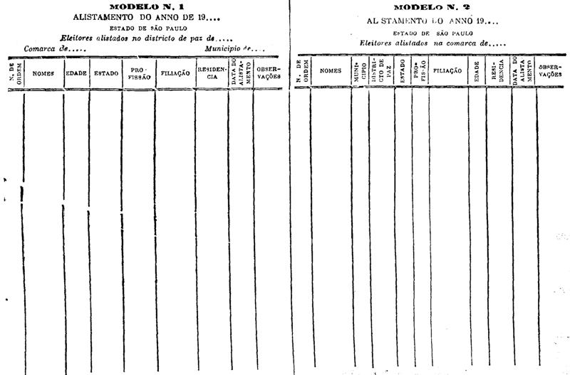 registro de eleitores por districtos de paz e comarcas, e bem assim o
