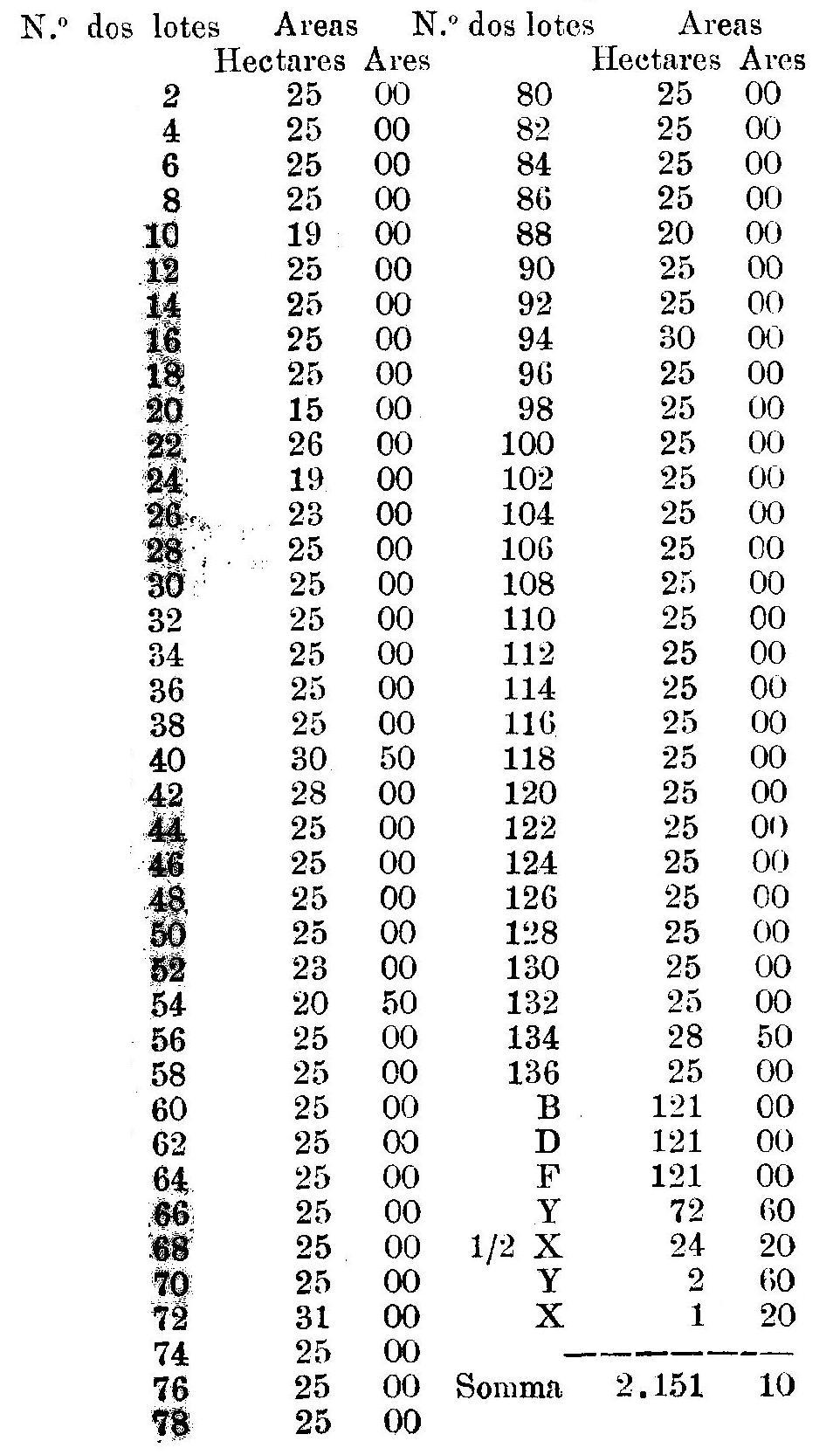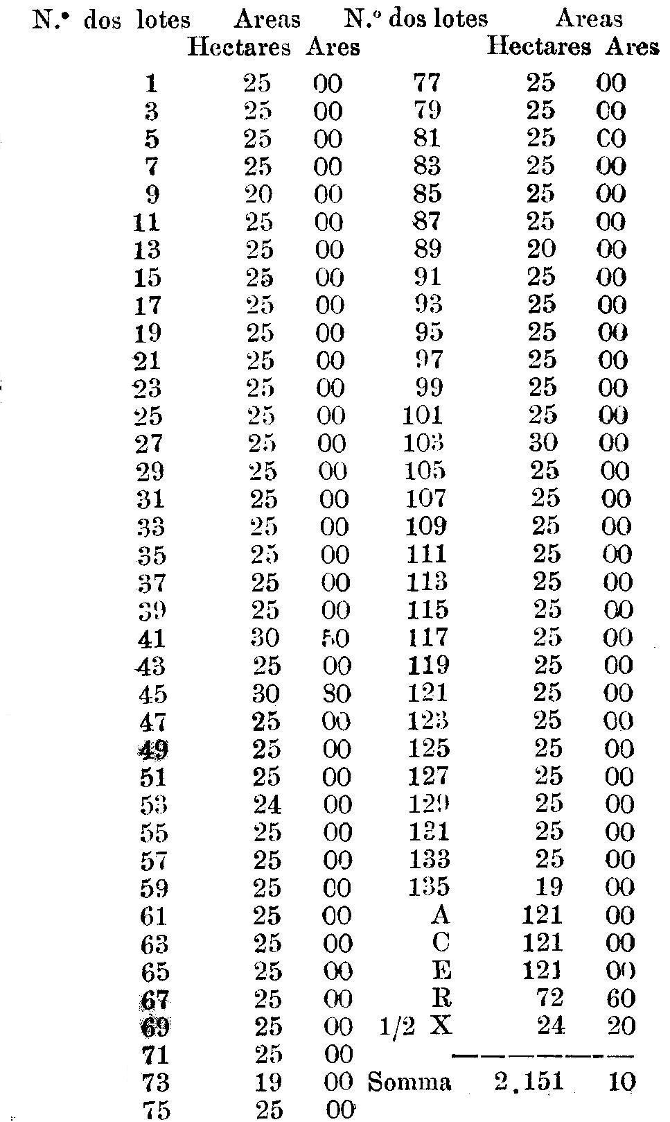 terras, na totalidade de 2.151 hectares e 10 ares, distribuidas pelos