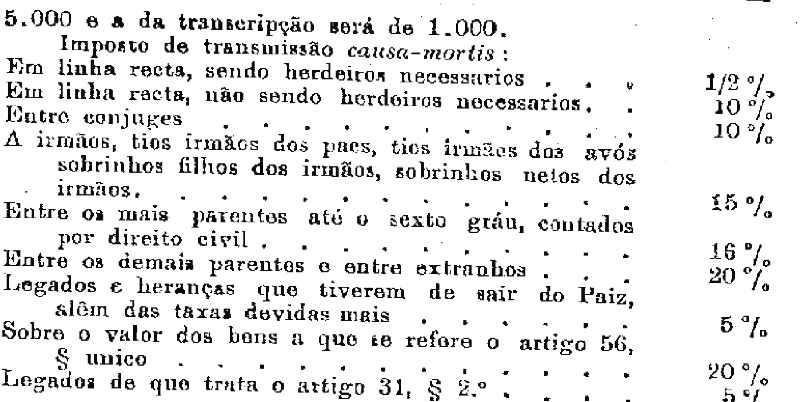§ 3.° - Nas outras comarcas, 2 %, ao juiz, 1 1/2% ao exactor, 1% ao escrivão do inventario e 1/2 % ao contador do juizo.