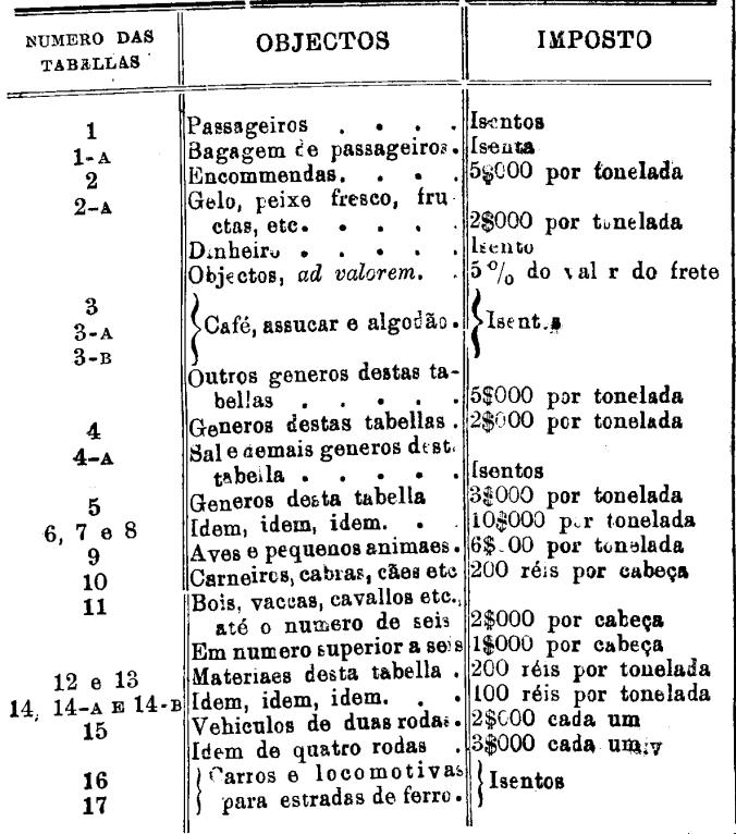 16. O sal e os generos classificados na tabella n. 4-A, das tarifas das estradas de ferro Paulistas.