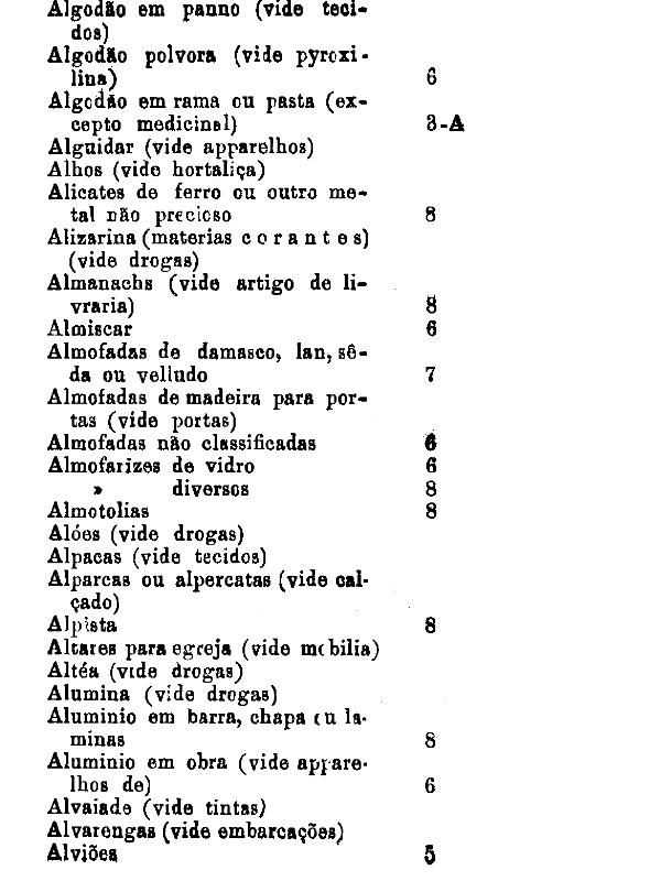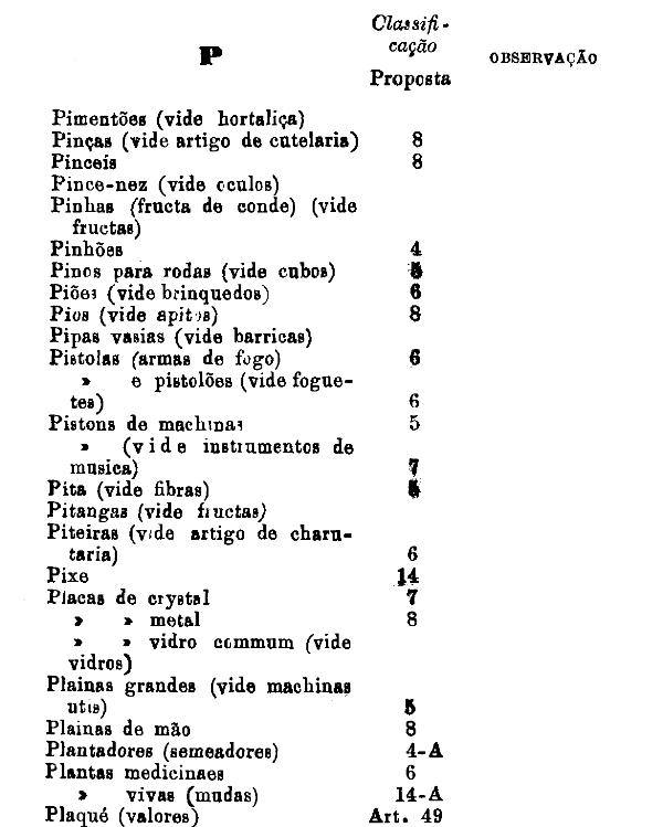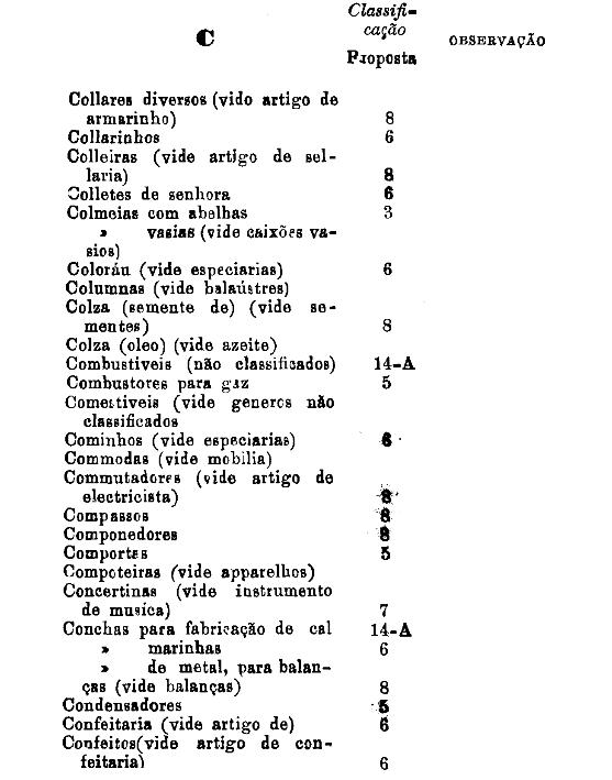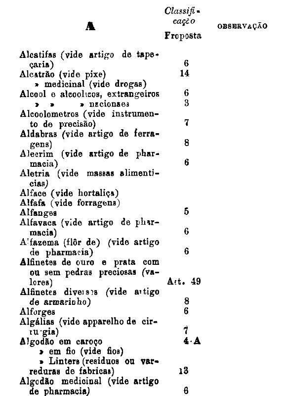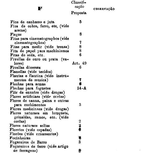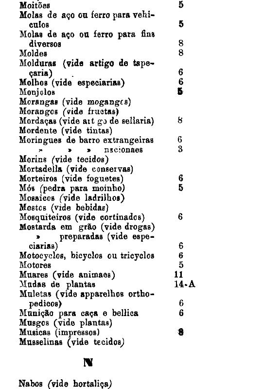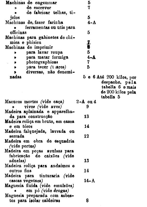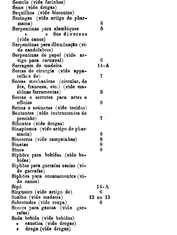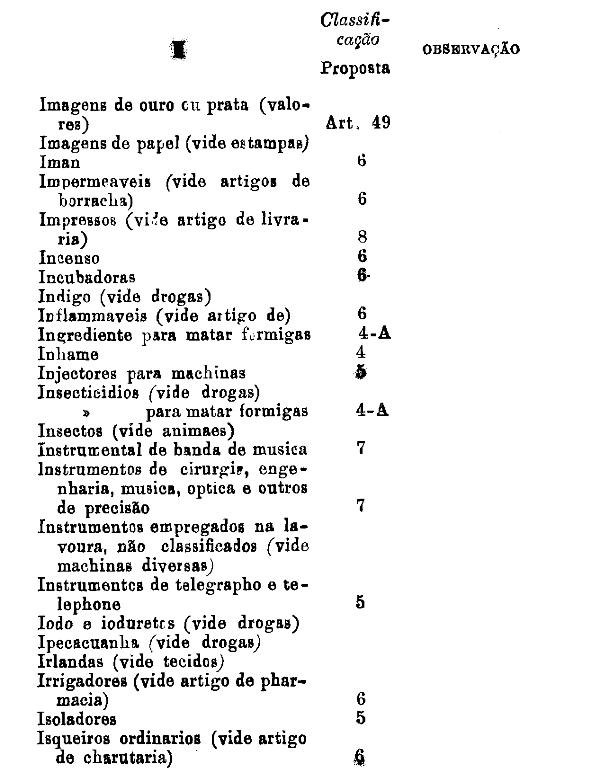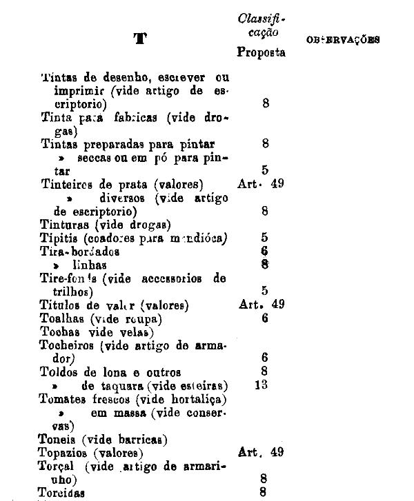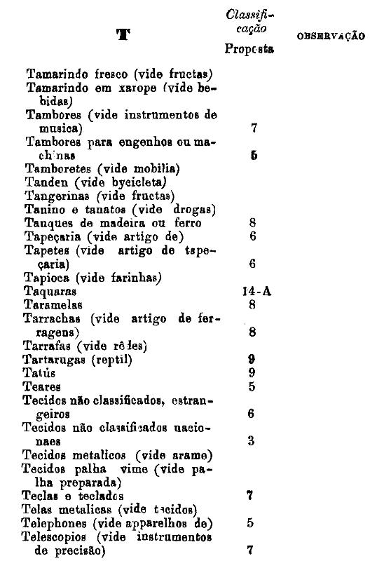 classificados nesta tabella, bem como os productos classificados nas tabellas