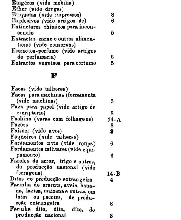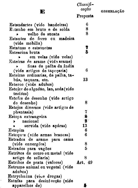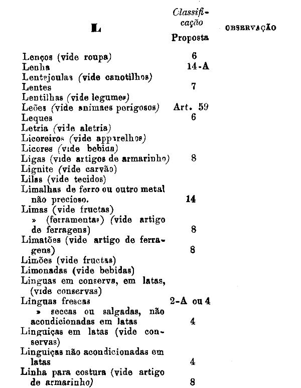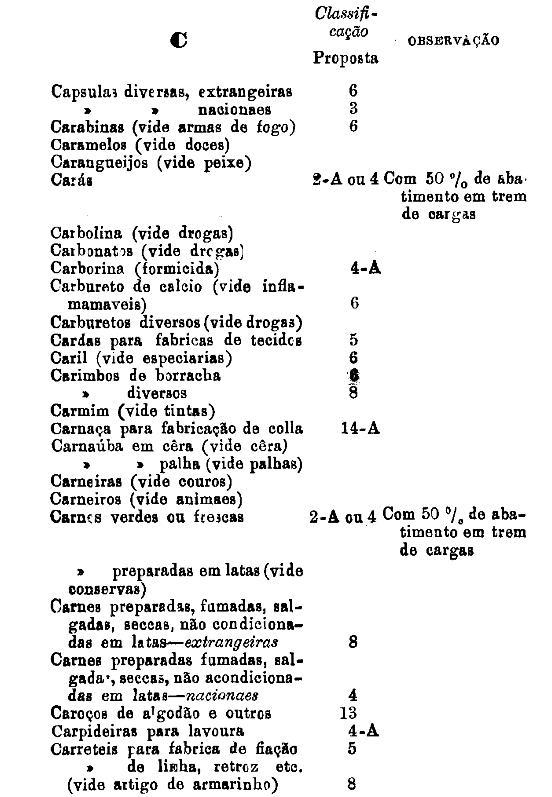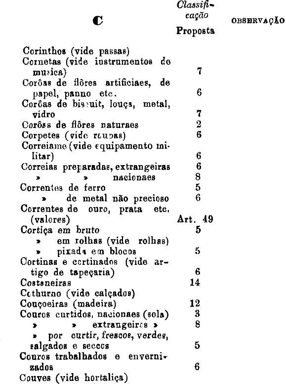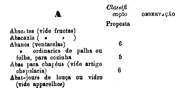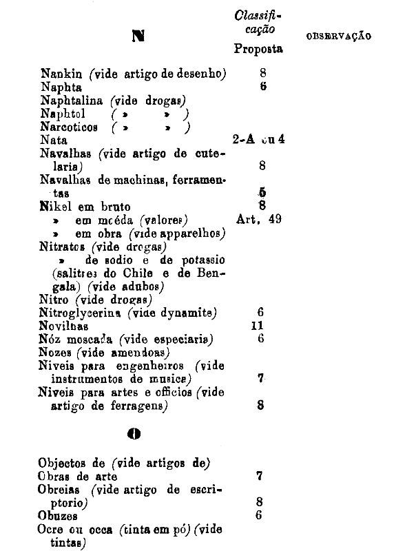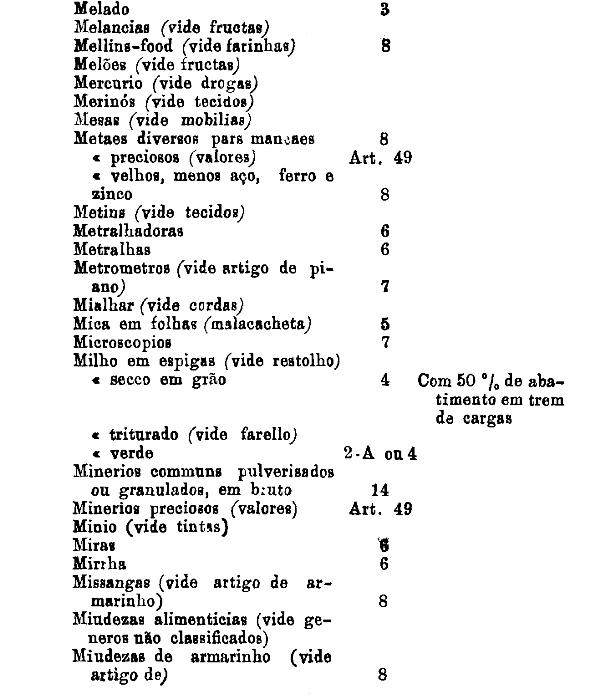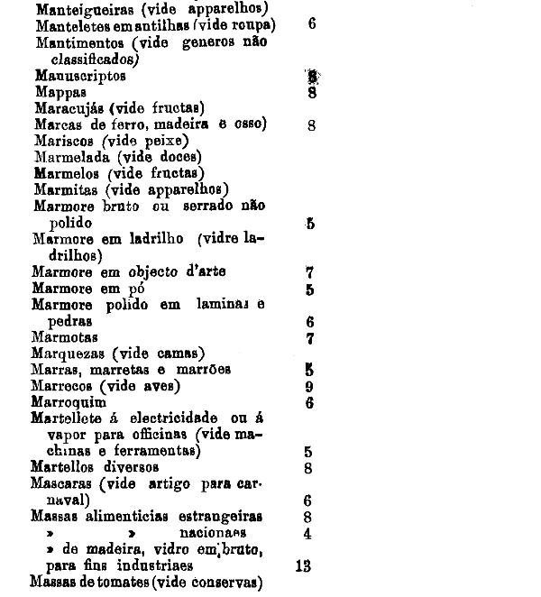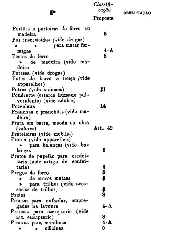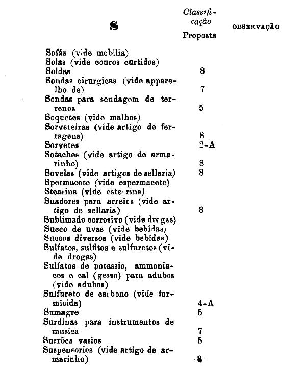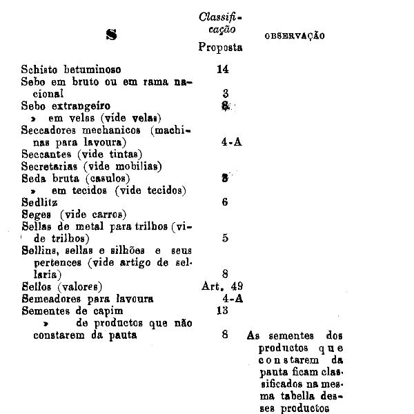 classificados nesta tabella, bem como os productos classificados nas tabellas