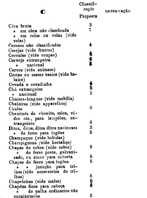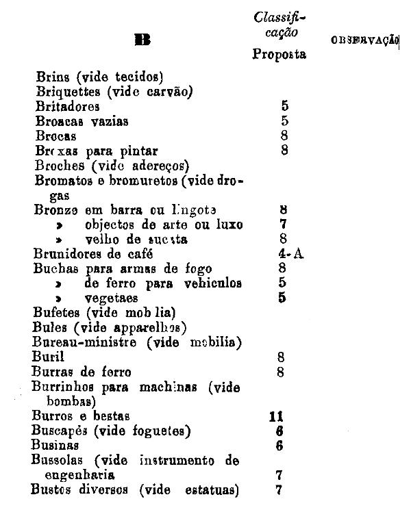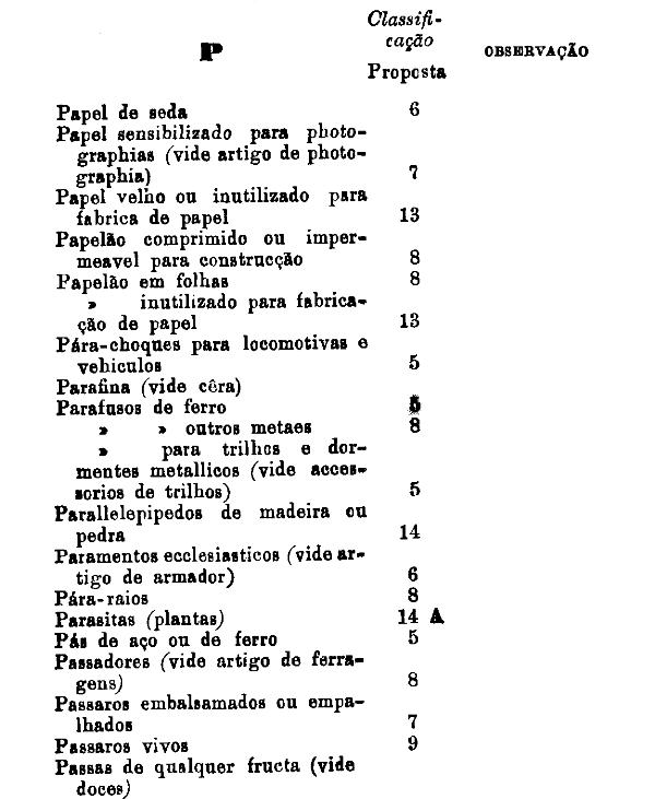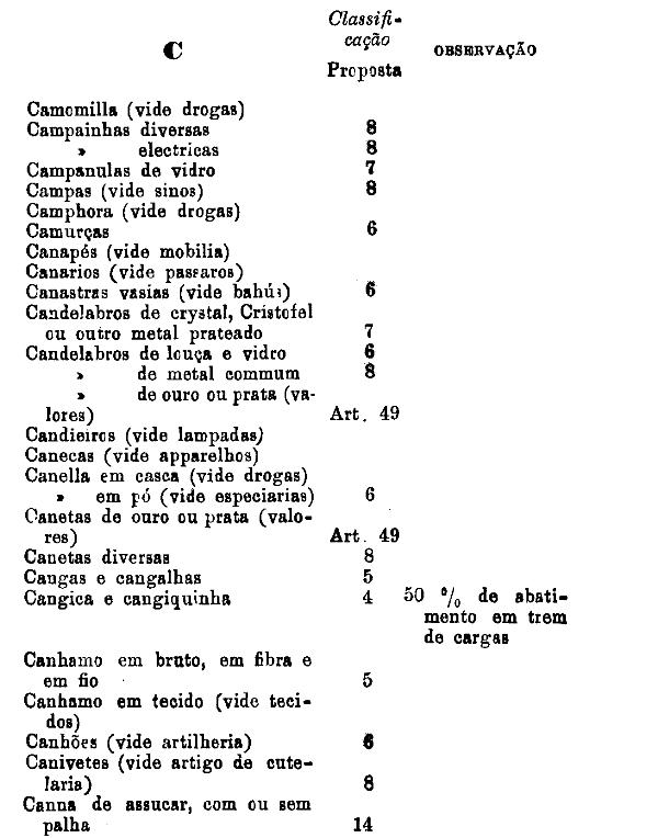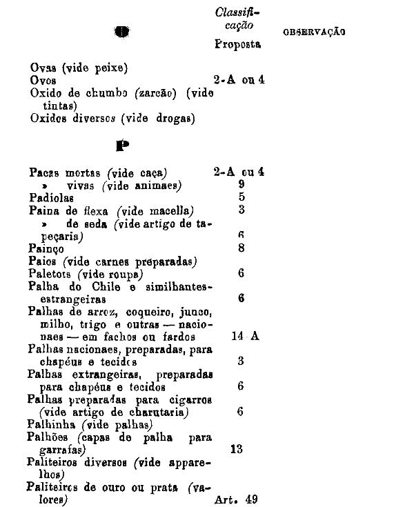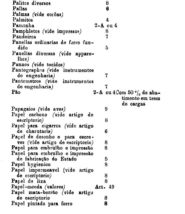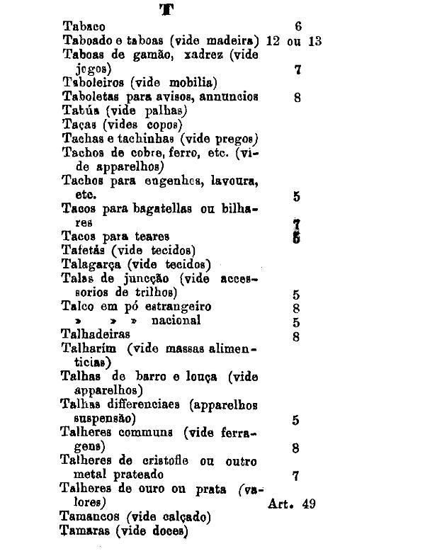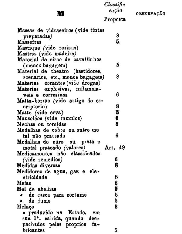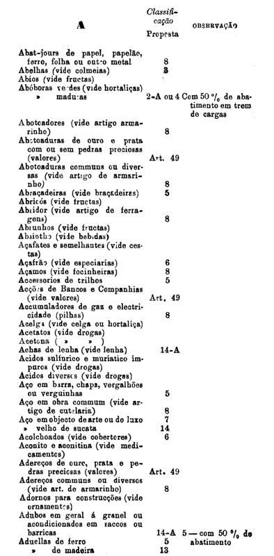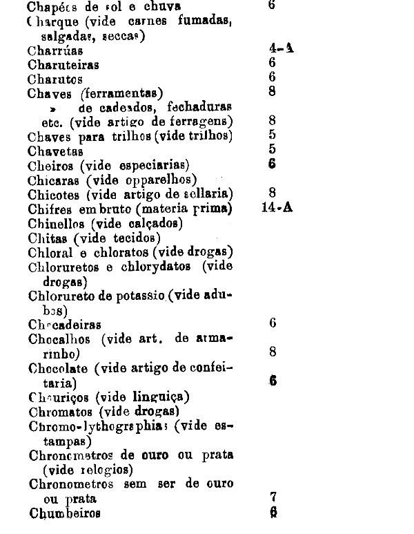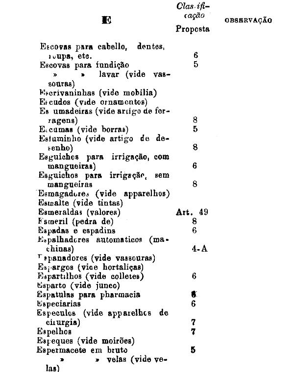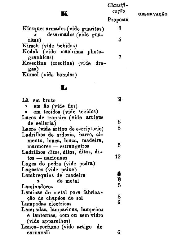classificados nesta tabella, bem como os productos classificados nas tabellas