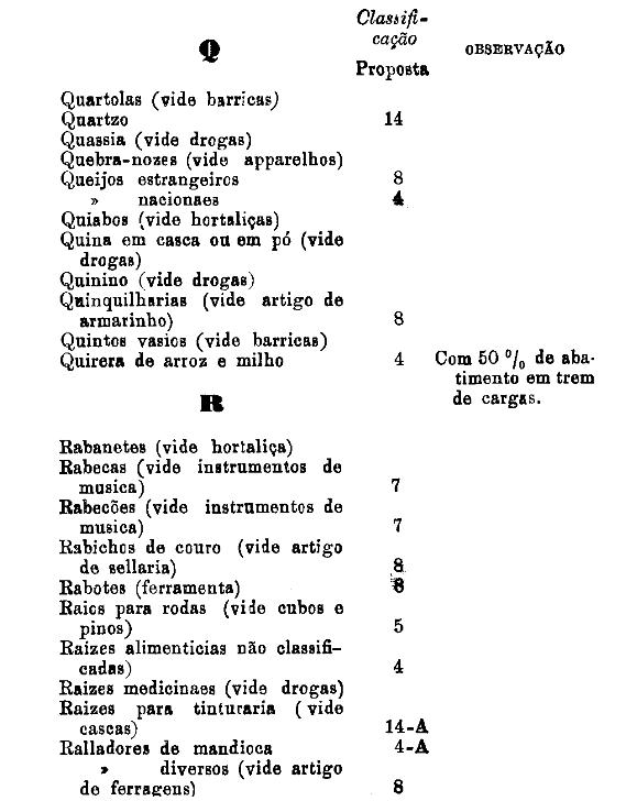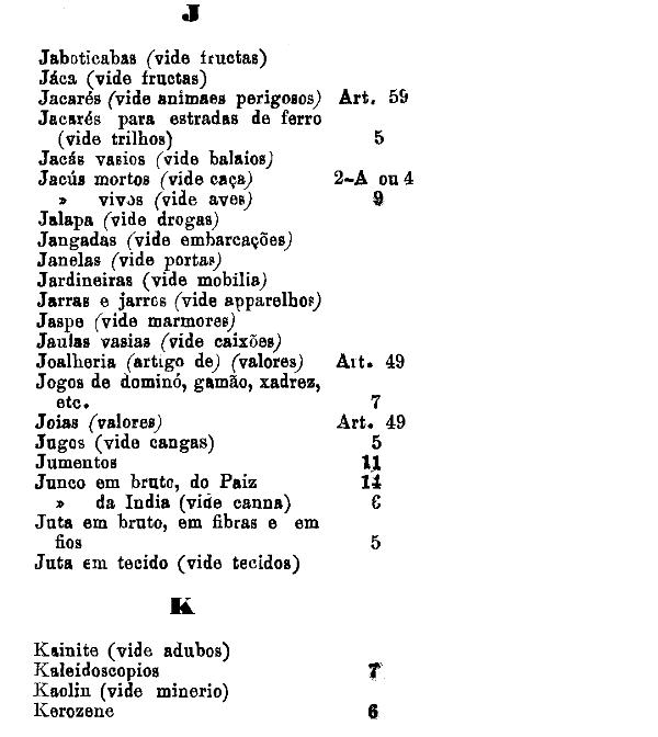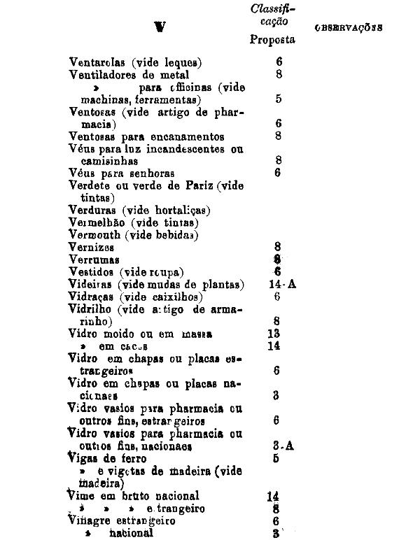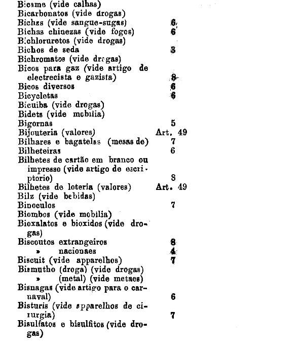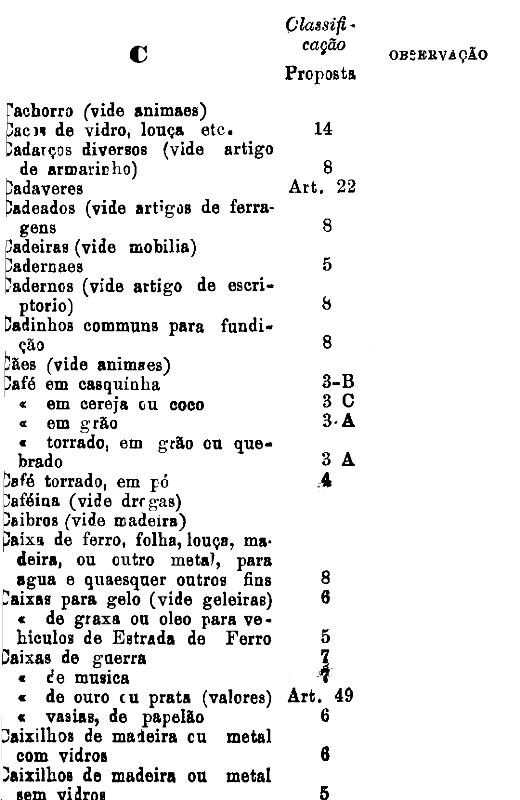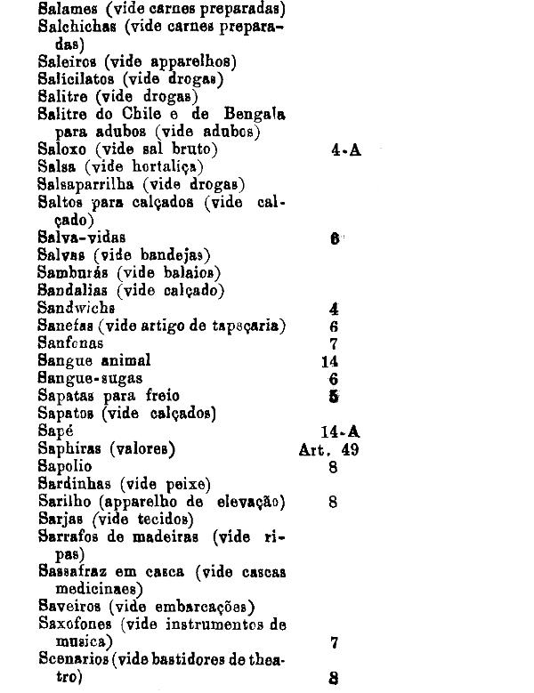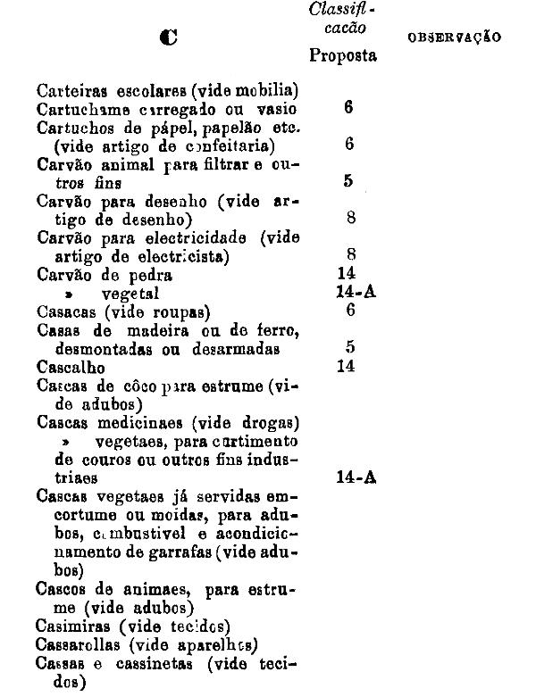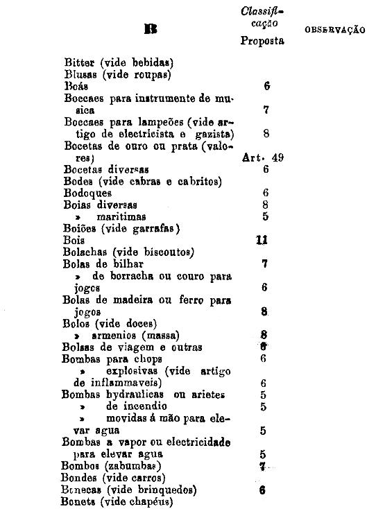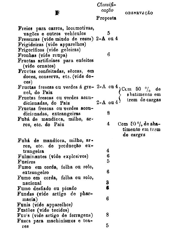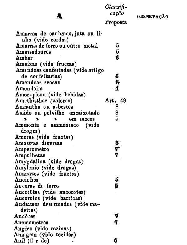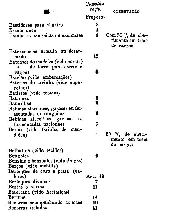 classificados nesta tabella, bem como os productos classificados nas tabellas