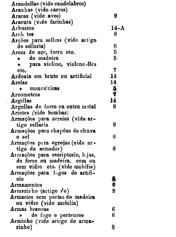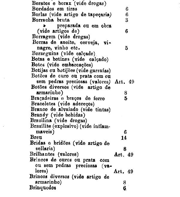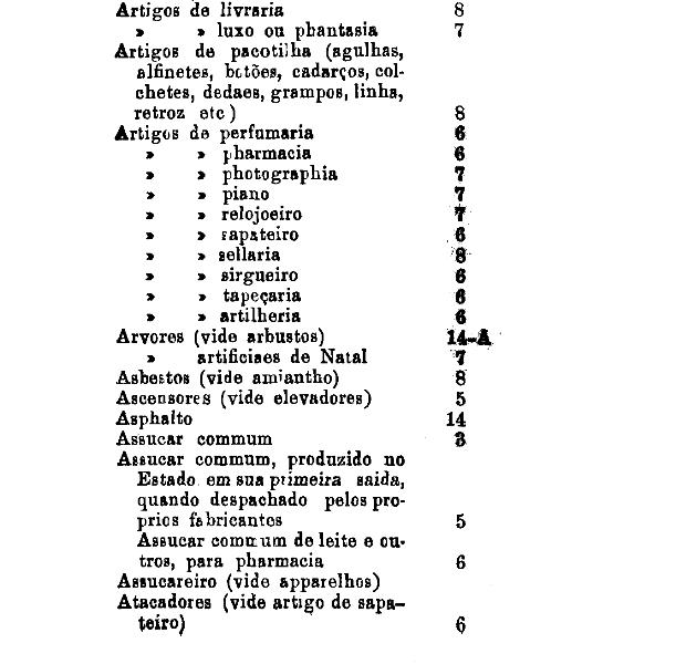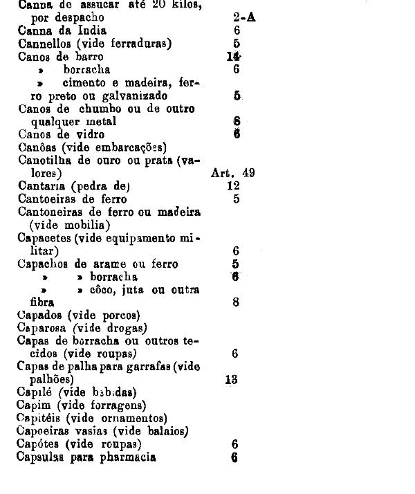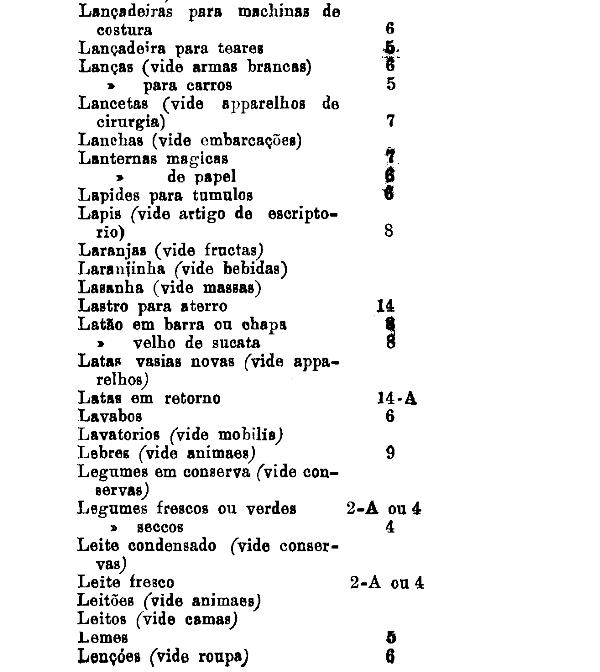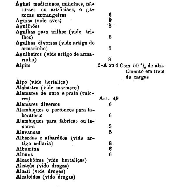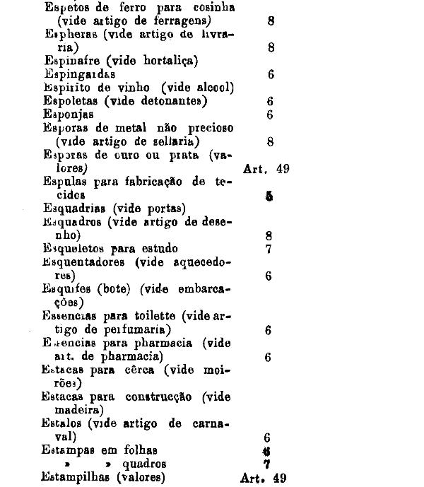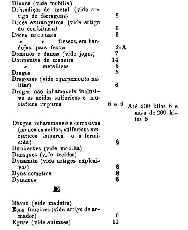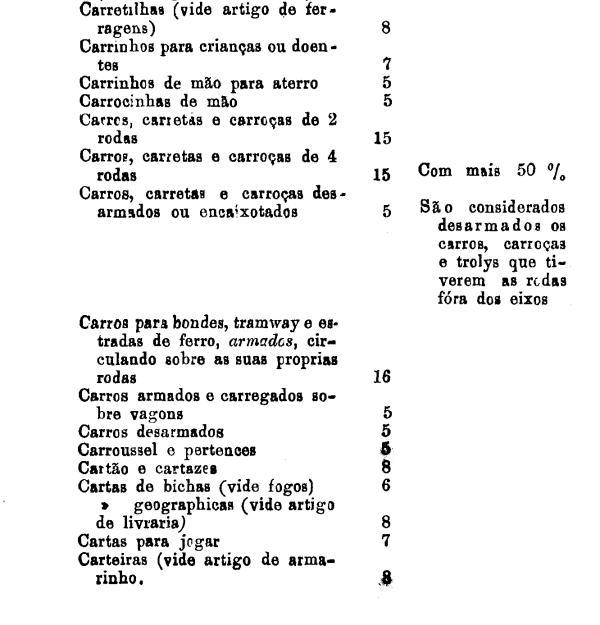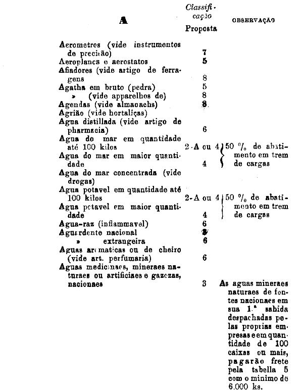 armarinho não classificados nas outras tabellas. Também peoróleo, agua-raz e
