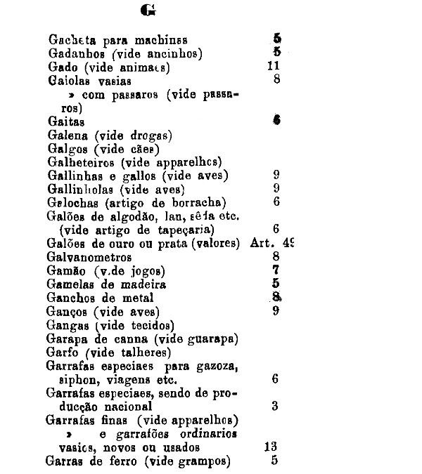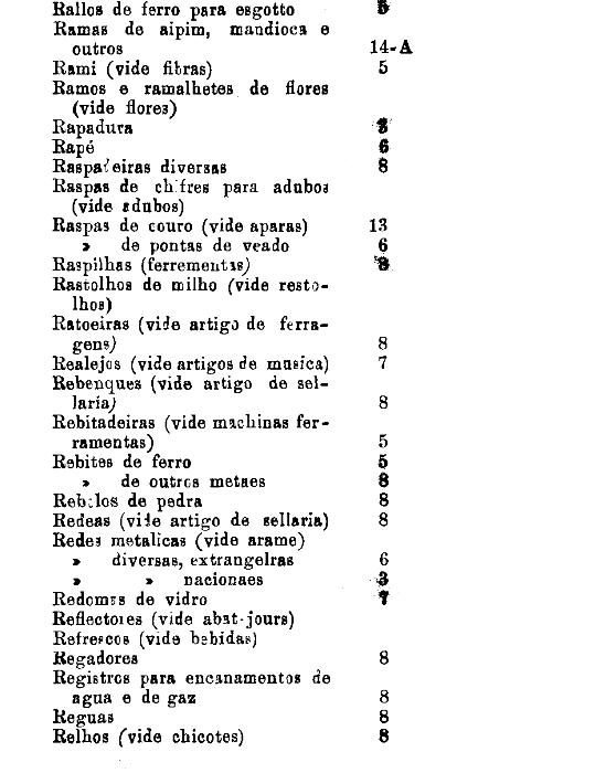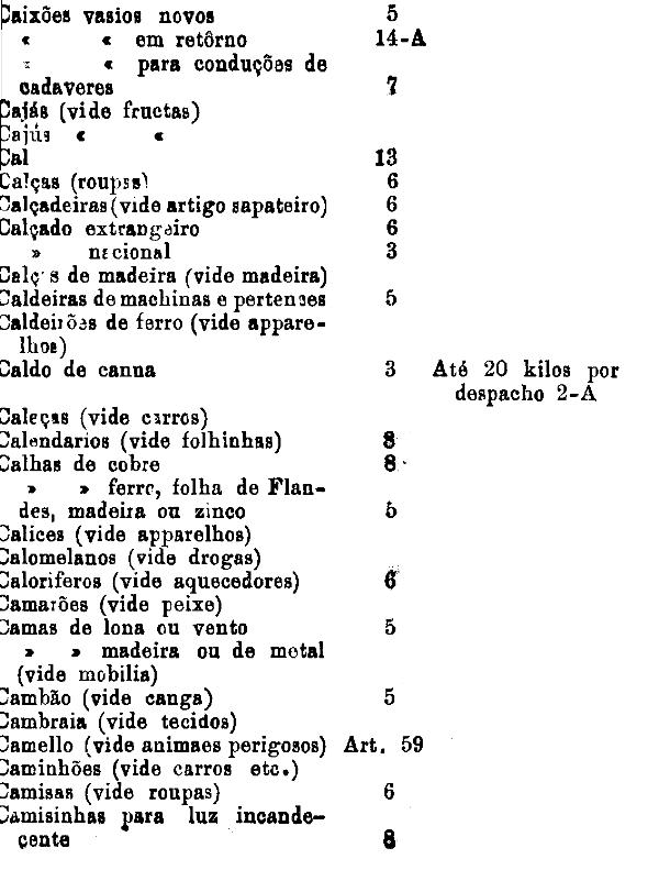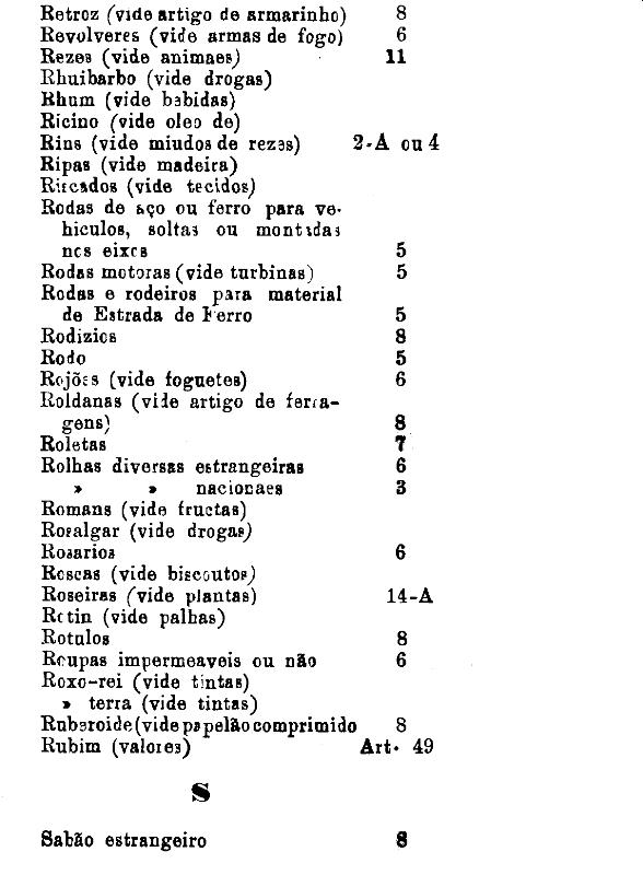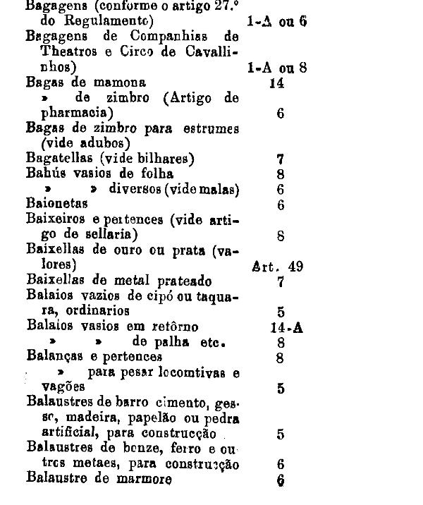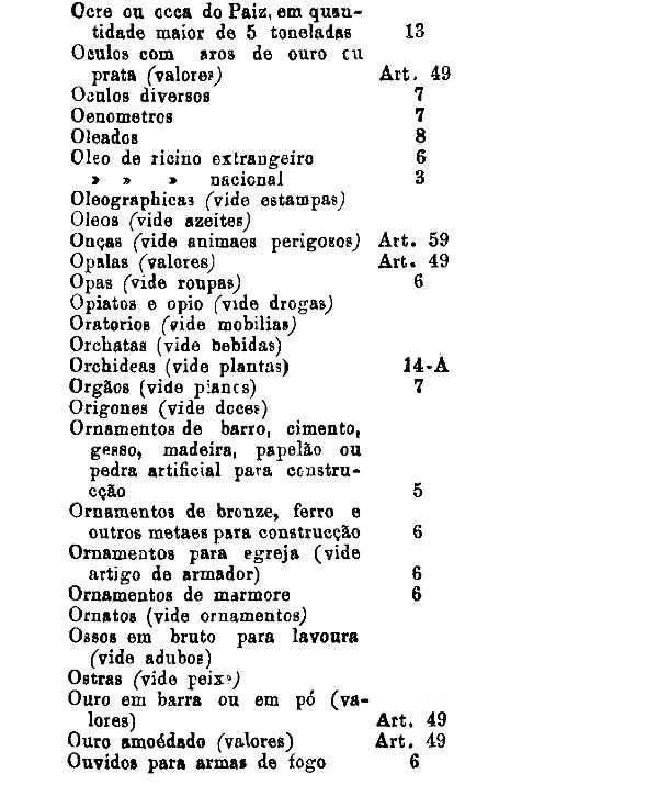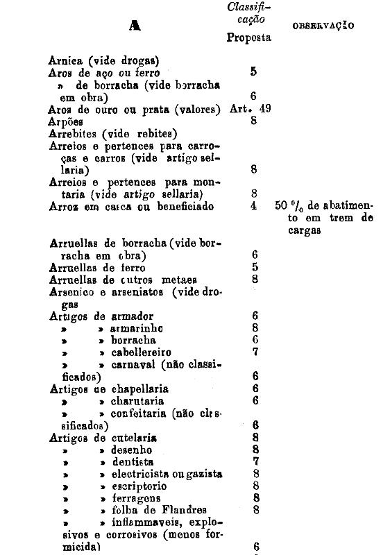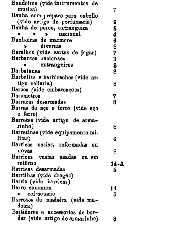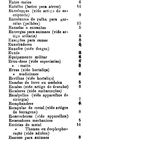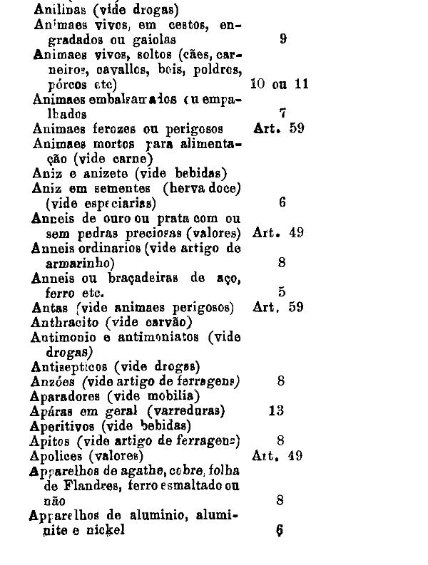 armarinho não classificados nas outras tabellas. Também peoróleo, agua-raz e