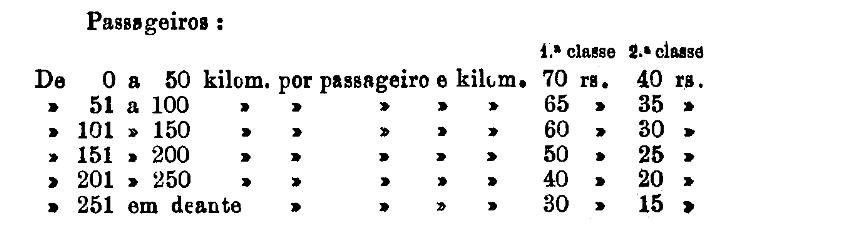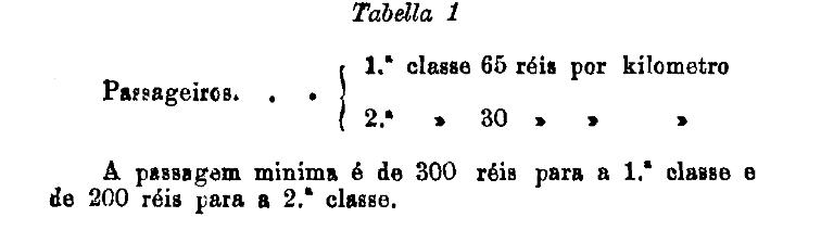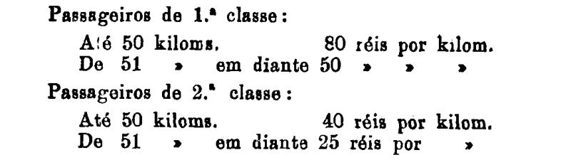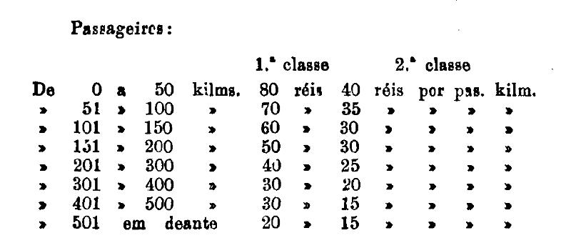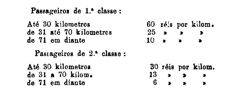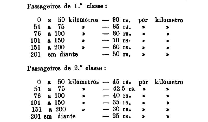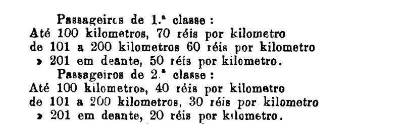 1.ª classe - 100 réis por kilometro