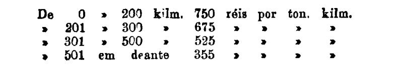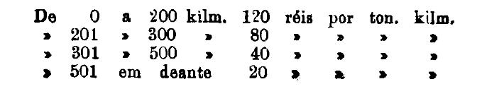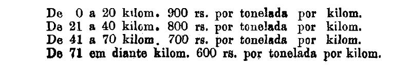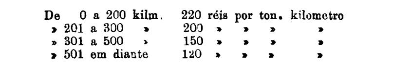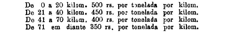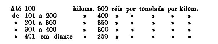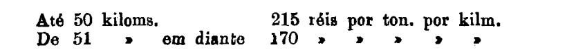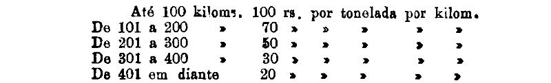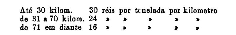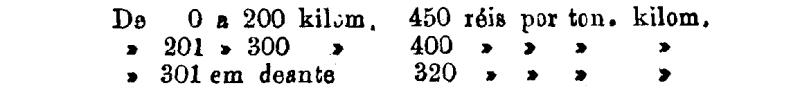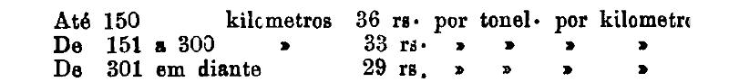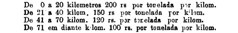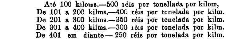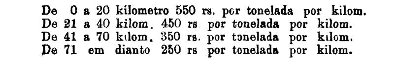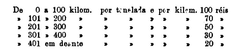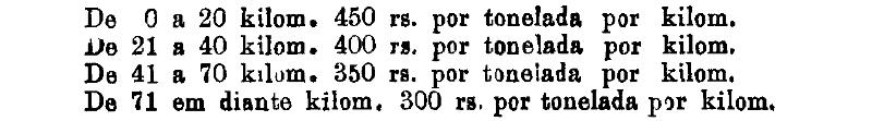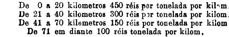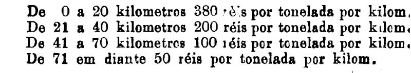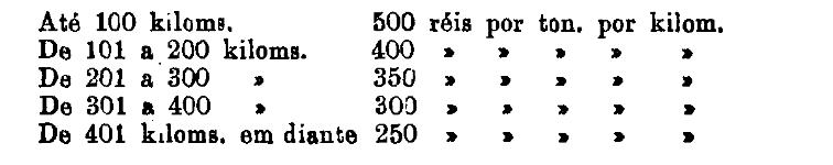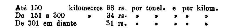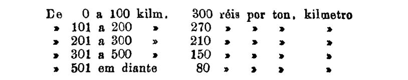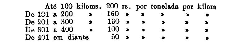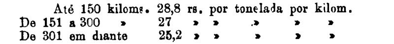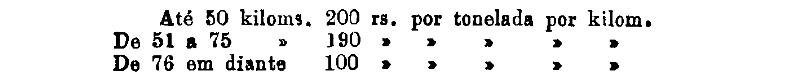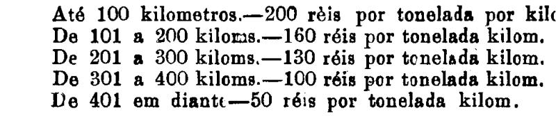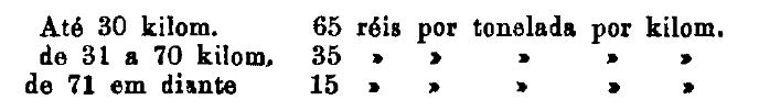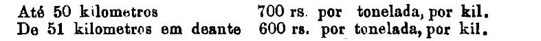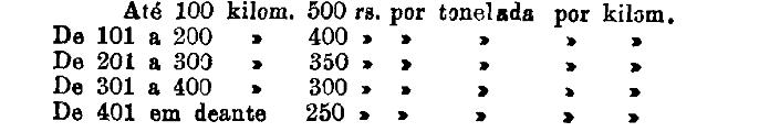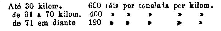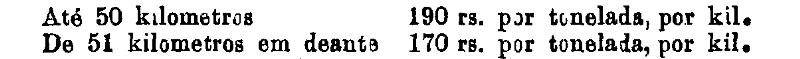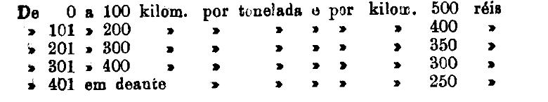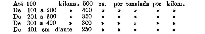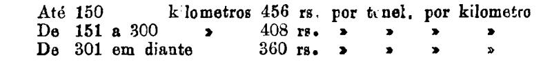 Até 100 kiloms. 500 rs. por tonelada, por kilom.