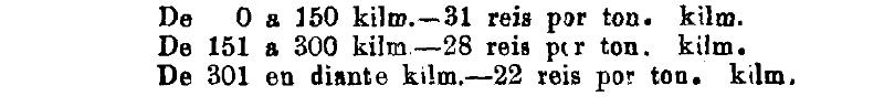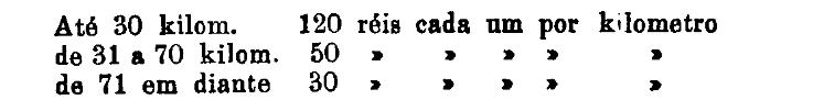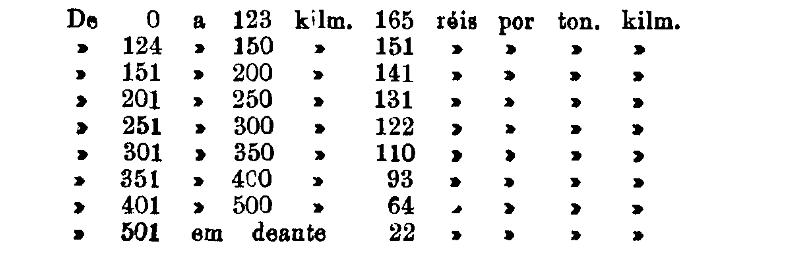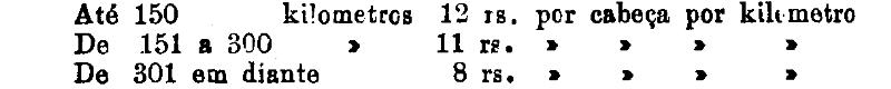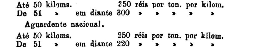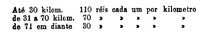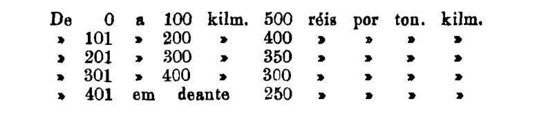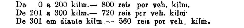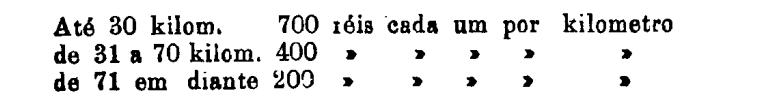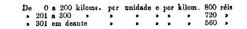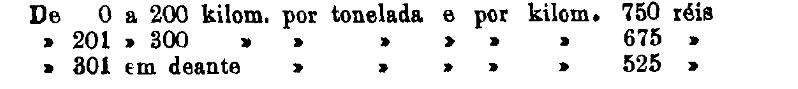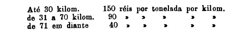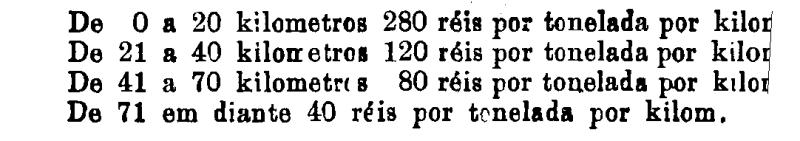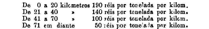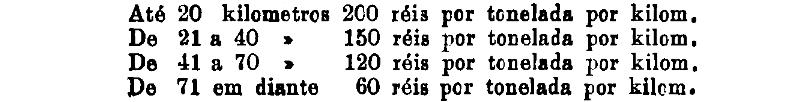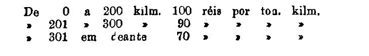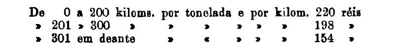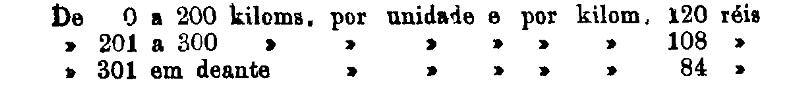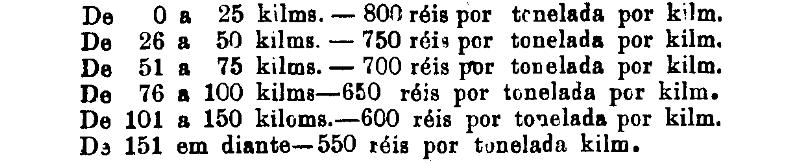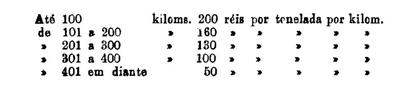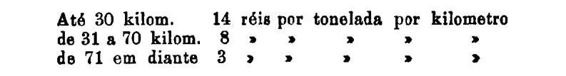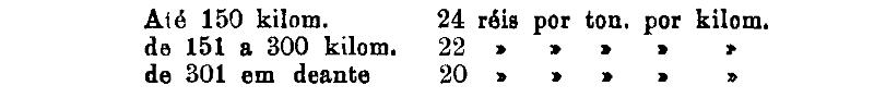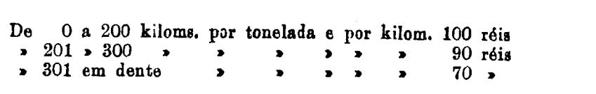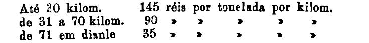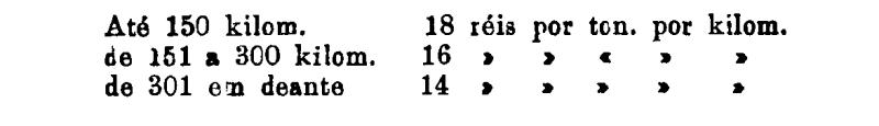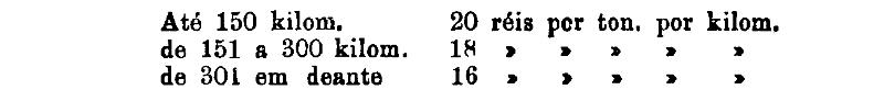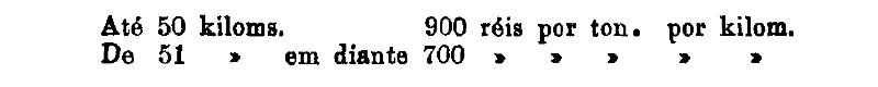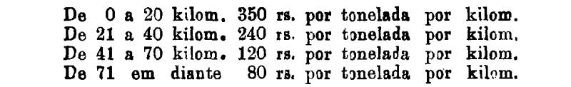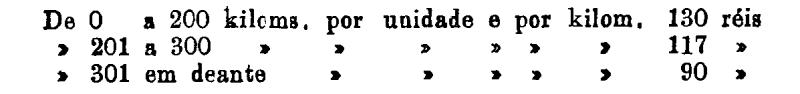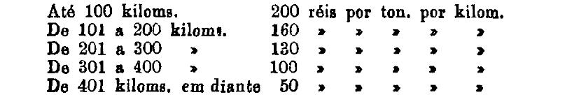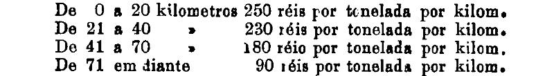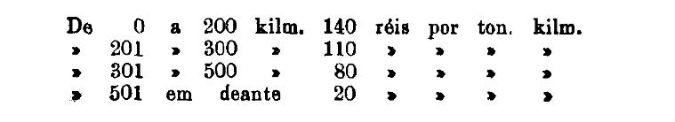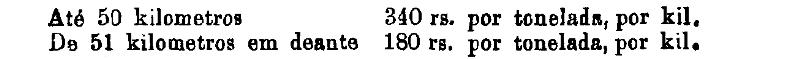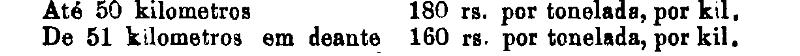 Até 100 kiloms. 500 rs. por tonelada, por kilom.