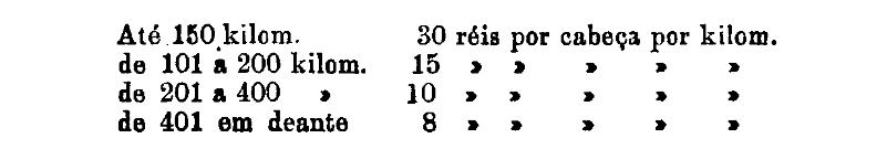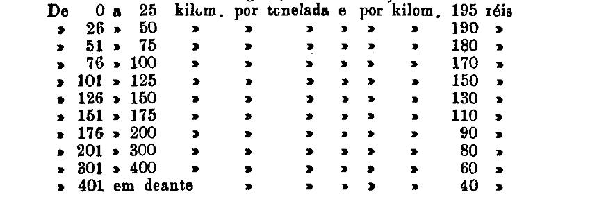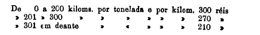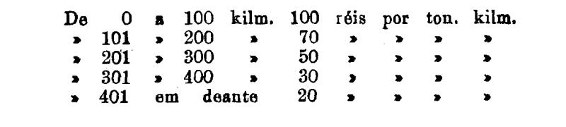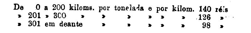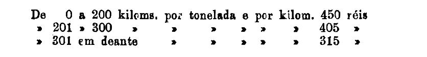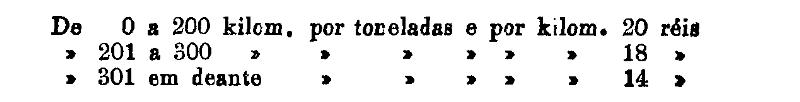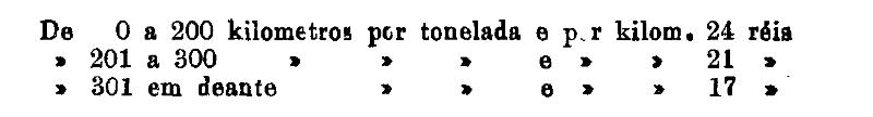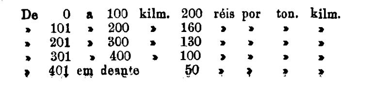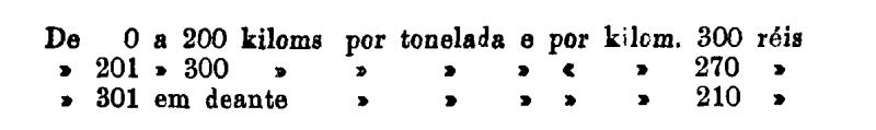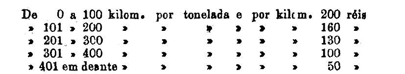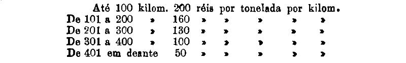 De 401 em deante 250 rs. por tonelada, por kilom.