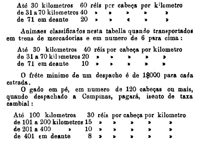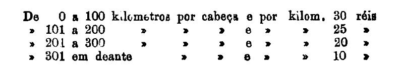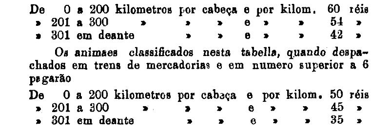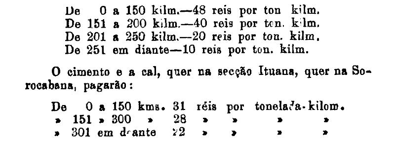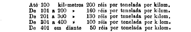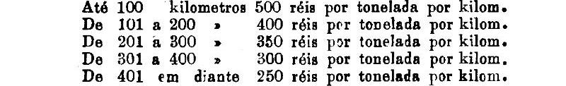 300 réis por tonelada, por kilometro