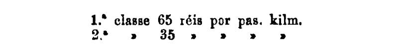 2.ª classe - 50 réis por kilometro