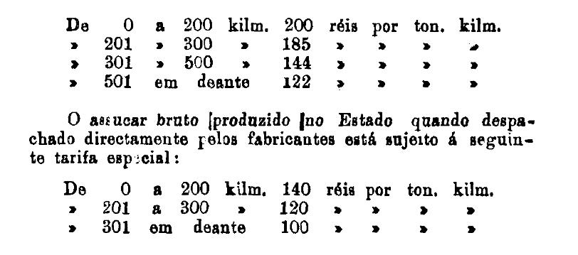 468 réis por tonelada, por kilometro