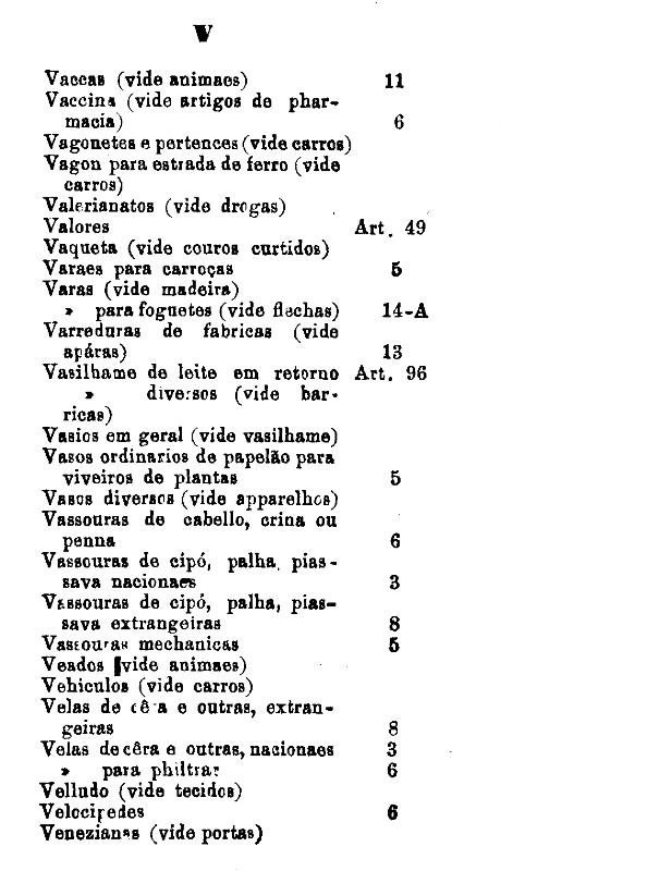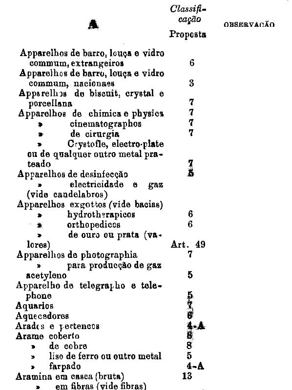 Gêneros e productos não classificados nas outras tabellas,