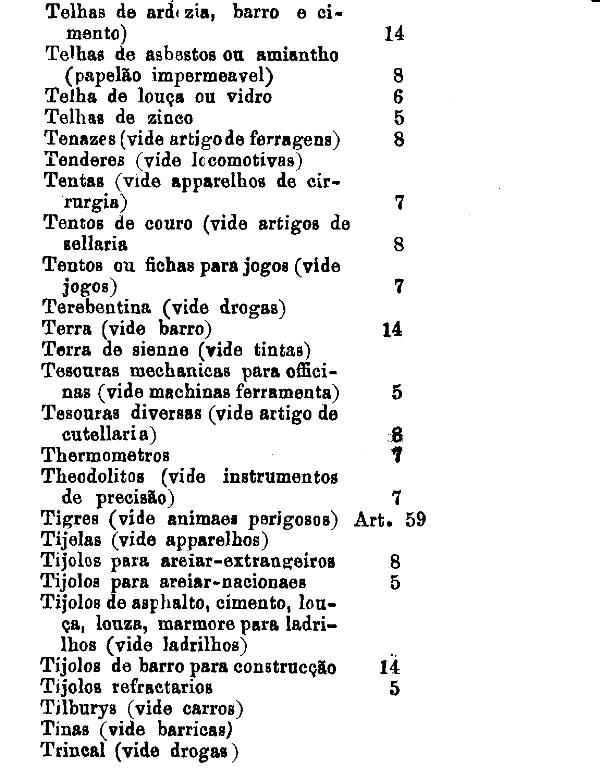 fabricados no paiz quando não classificados nas outras tabellas.
