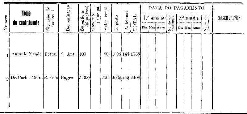 Aos.........dias do mez de............................................de 191..... compareceu nesta collectoria o sr........ ........................ ........................., proprietario do immovel denominado, .............................................sito neste municipio, na localidade denominada..............................................................e declarou com relação ao dito immovel o seguinte: