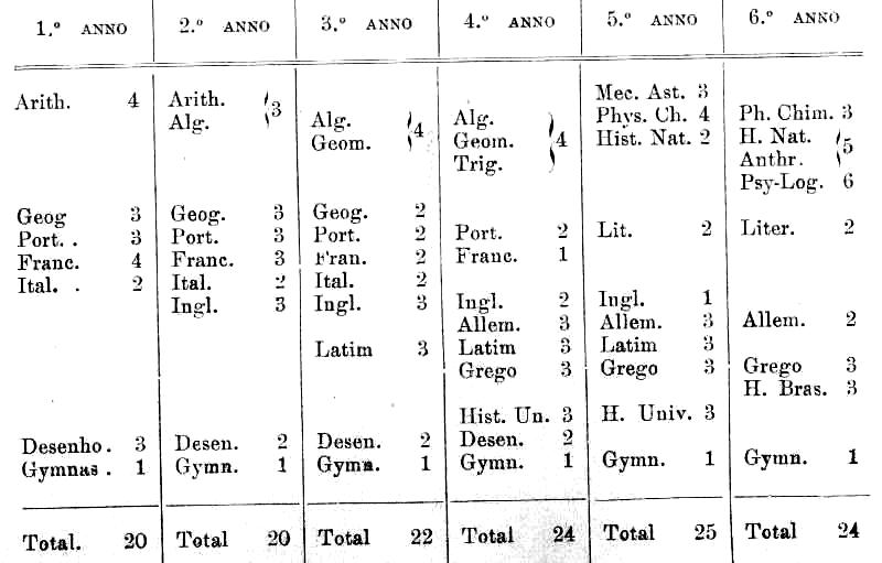 anno, 2 aulas de Geometria por semana e 2 de Algebra; no 4.° anno,