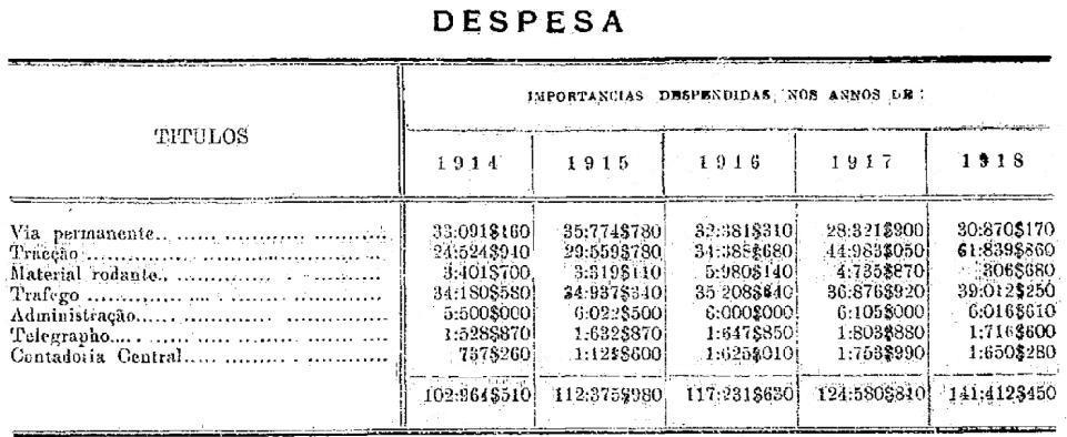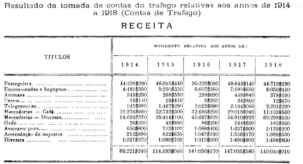 trafego, relativas aos annos de 1914 a 1918, da estrada de ferro de