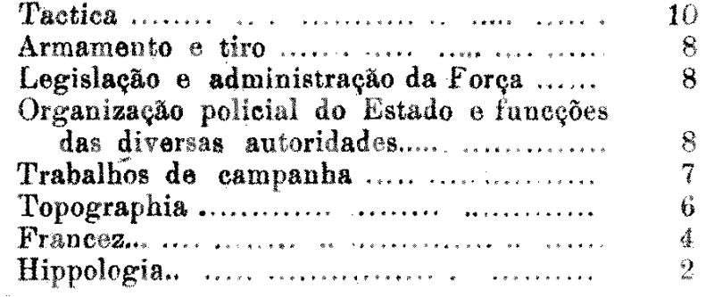 segunda cadeira - Noções de hippologia, equitação e a instrucção de cavallaria constante dos regulamentos adoptados na Força;