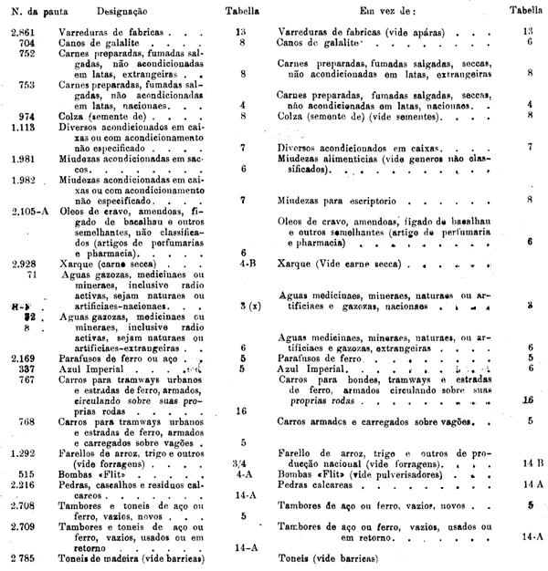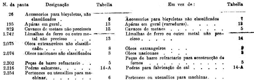na pauta de mercadorias a que se referem os decretos ns. 2.311, de 21