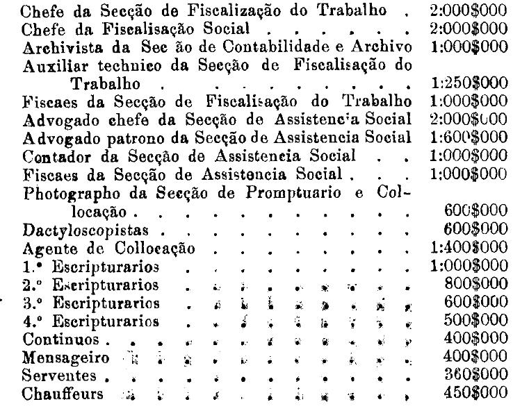 de vencimentos do pessoal do Departamento do Trabalho Industrial,