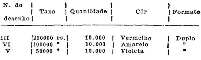 no tocante a quantidade de selos a emitir, ao quadro anexo, que vai